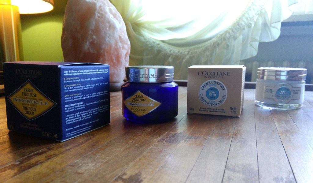I think it is funny and useful to let you see the difference in a cream for a 30 years old woman and a 50 years old woman. These are the face creams that my mother and I use. We are in love with L’Occitane, but we have different needs.