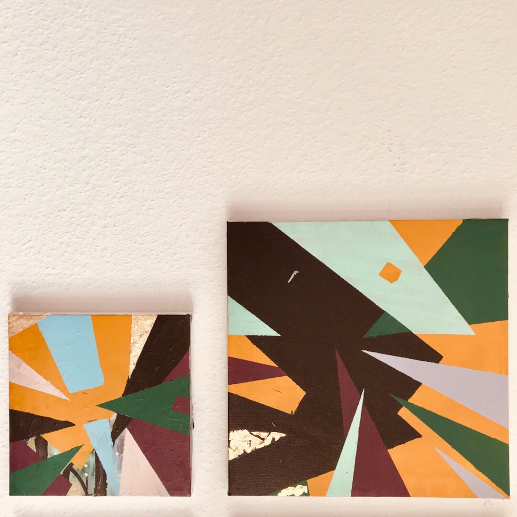- Non serve essere Pablo Picasso per maneggiare un pennello, questo è poco ma sicuro. Non serve dipingere una nuova Mona Lisa o la volta della Cappella Sistina. Basta muovere pennello e colore sulla tela o su di un foglio ruvido. Vedete il mio rozzo e ovviamente astratto esempio, io sono andata a sentimento. Ho posizionato dello scotch di carta per non sbavare et voilà, opera d’arte fatta.